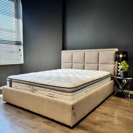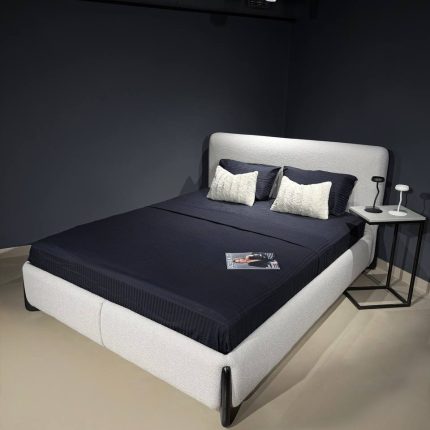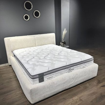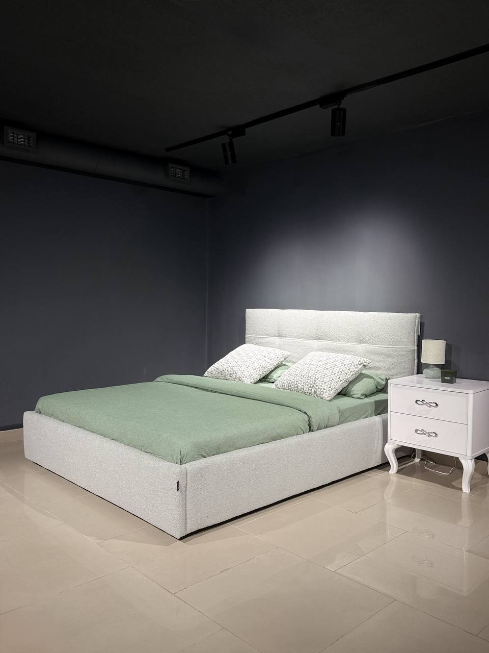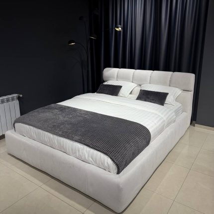 Елегантне та мінімалістичне ліжко, яке ідеально пасує до сучасного інтер’єру. М’яке узголів’я забезпечує комфорт під час відпочинку чи читання, а міцна конструкція гарантує довговічність. Світло-сіре текстильне оздоблення додає легкості й затишку, створюючи спокійну атмосферу у спальні.