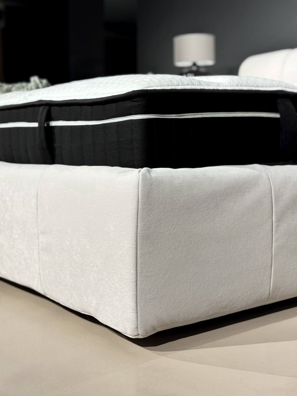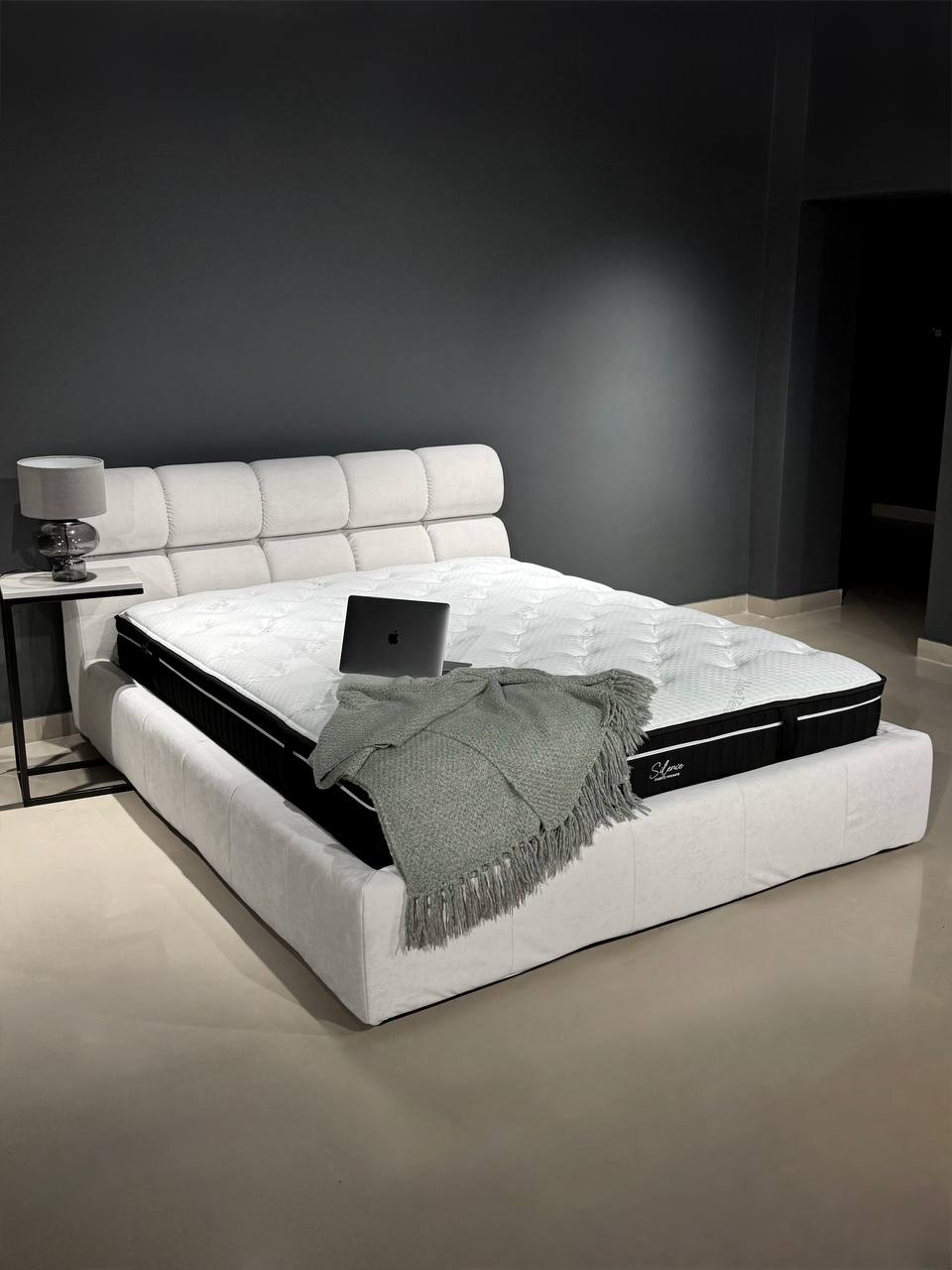 Сучасне м’яке ліжко з високим узголів’ям — стильне рішення для мінімалістичної спальні. Модель має об’ємне м’яке узголів’я з декоративною прошивкою, що забезпечує комфортну опору для відпочинку. Міцний каркас та лаконічний дизайн гармонійно поєднуються з різними інтер’єрами. Ідеальний вибір для тих, хто цінує комфорт, якість і сучасну естетику.