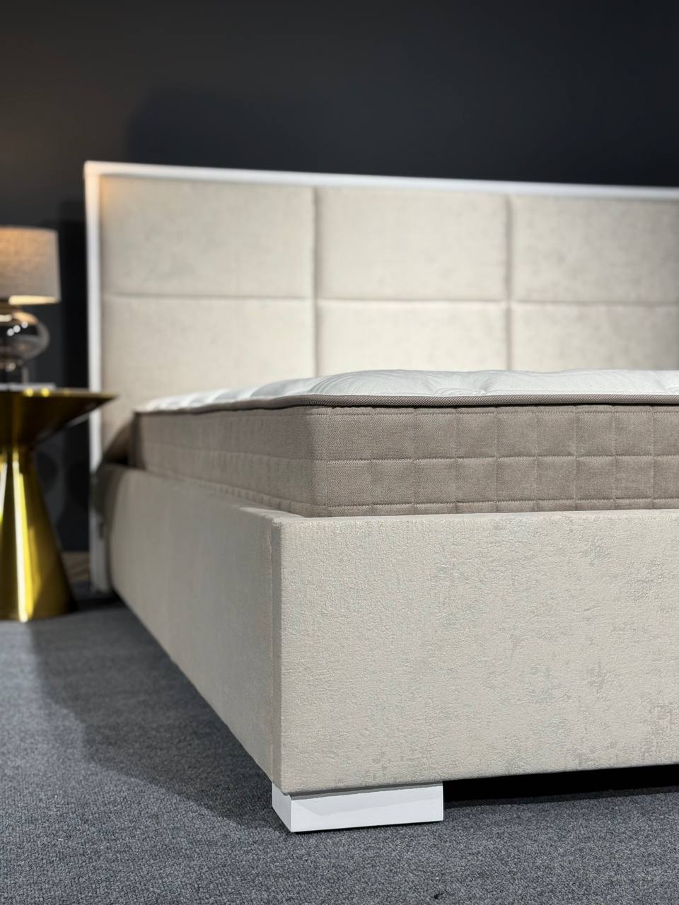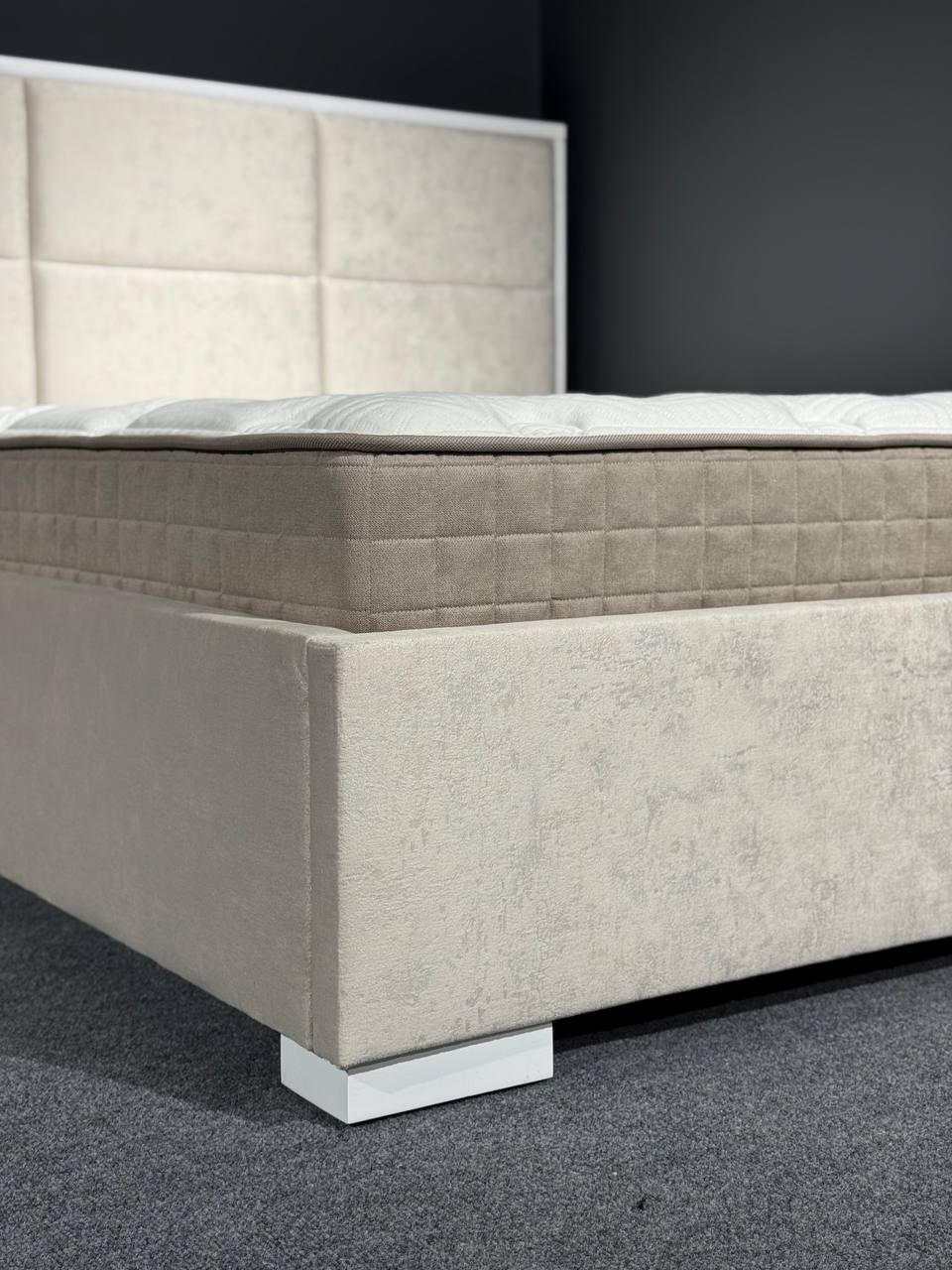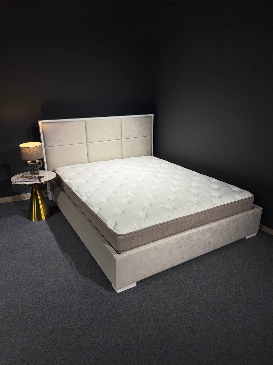 Стильне ліжко з геометричним узголів’ям — сучасна модель із м’якою оббивкою та лаконічними формами. Декоративні панелі на узголів’ї додають характеру та візуальної глибини інтер’єру. Міцна конструкція та продуманий дизайн забезпечують комфортний відпочинок і довговічність у щоденному користуванні.Ідеальний вибір для сучасної спальні.