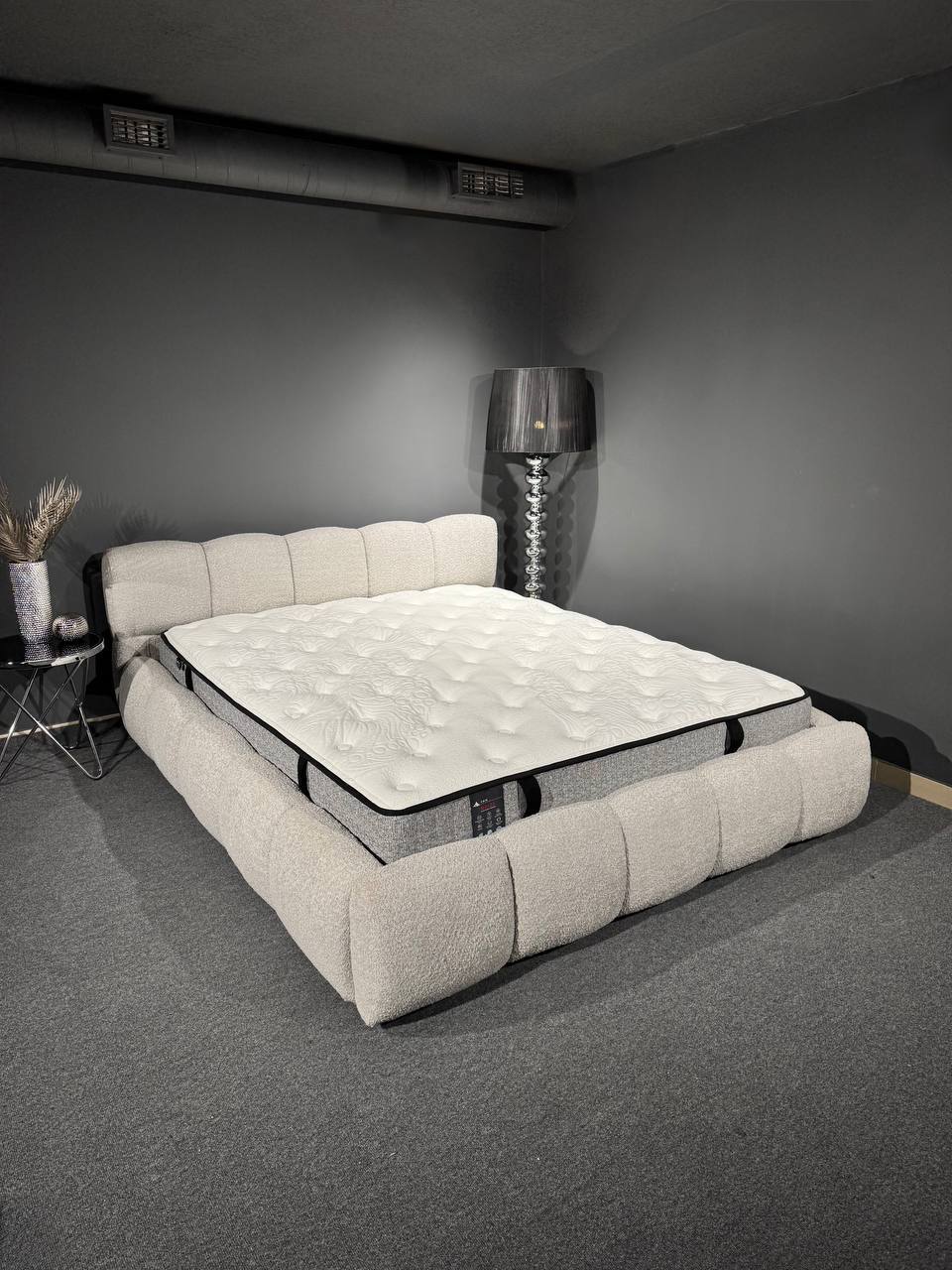М’яке ліжко з об’ємним дизайном — сучасна модель із виразними вертикальними прошивками та плавними формами. Низьке узголів’я та масивна основа створюють ефект затишку й стабільності. Приємна на дотик оббивка та продумана конструкція забезпечують комфортний відпочинок і довговічність у використанні. Ідеально доповнить сучасний інтер’єр спальні.