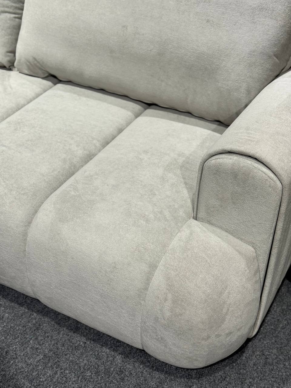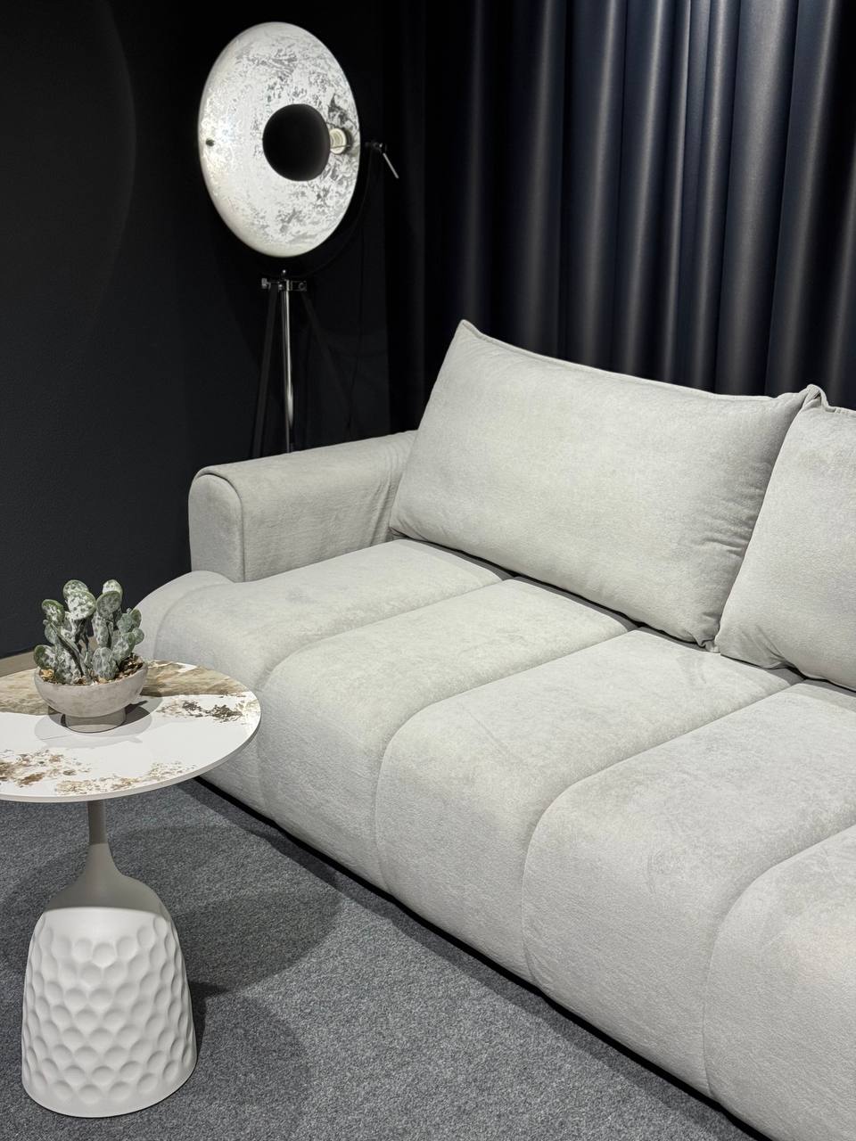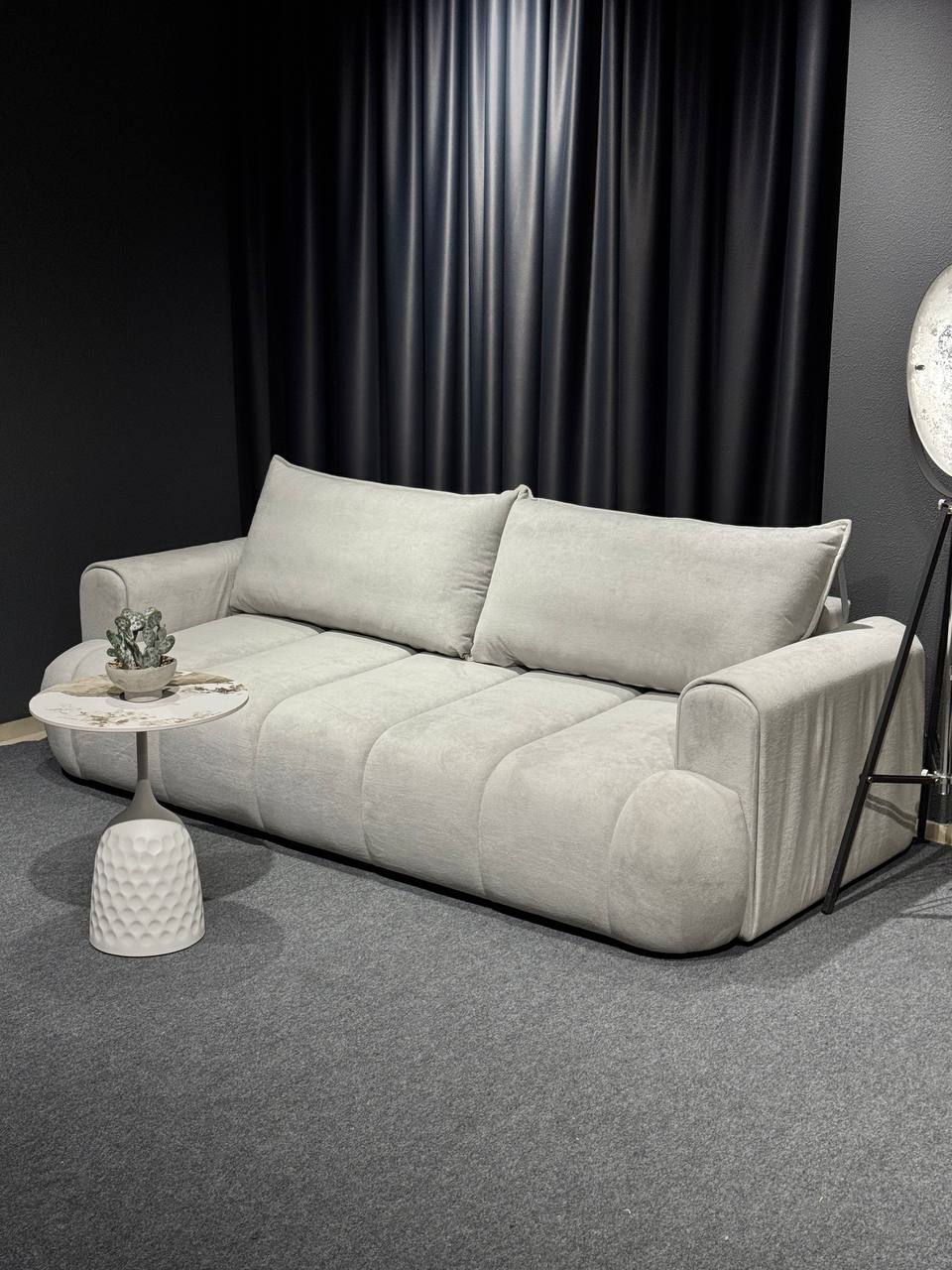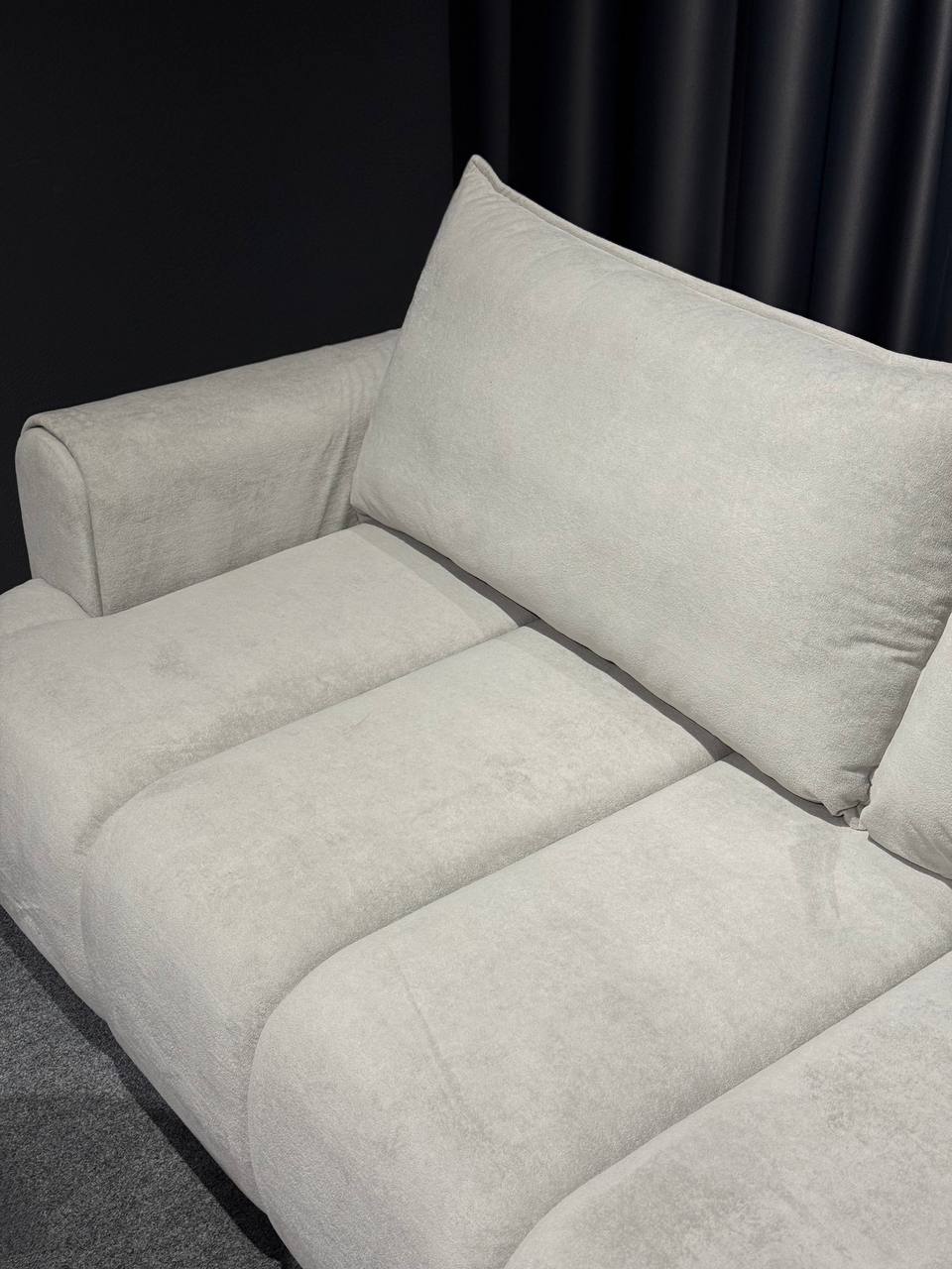 Стильний тримісний диван у світлому відтінку стане елегантним акцентом у сучасному інтер’єрі. Лаконічний дизайн із м’якими округлими формами та глибокою посадкою створює атмосферу затишку й комфорту.