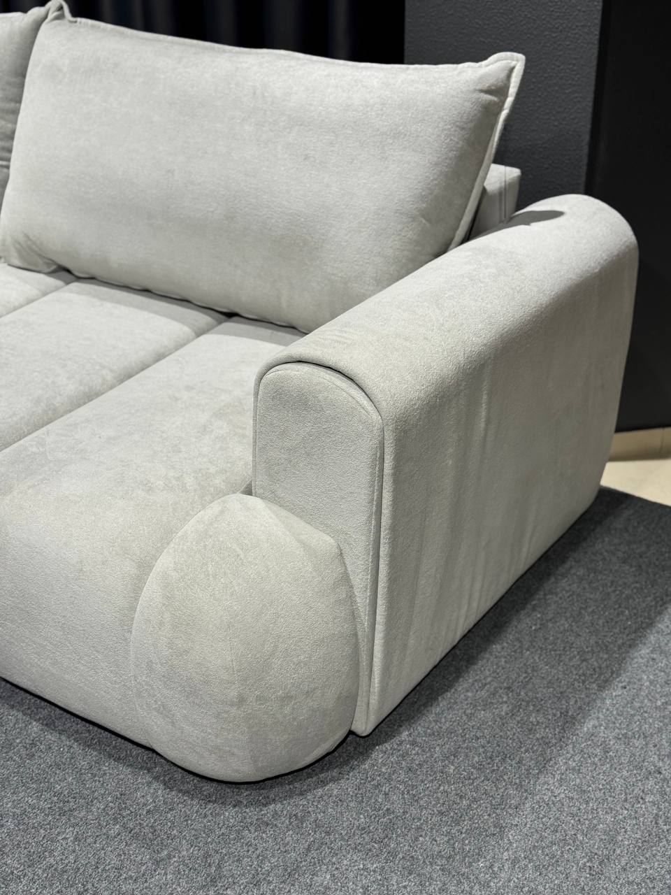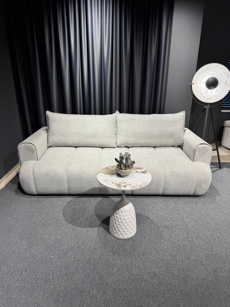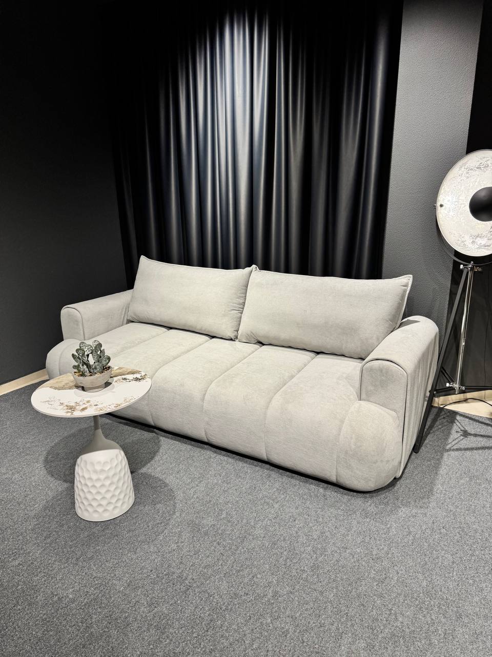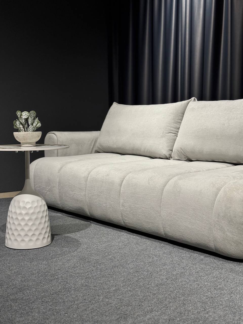 Стильний тримісний диван у світлому відтінку стане елегантним акцентом у сучасному інтер’єрі. Лаконічний дизайн із м’якими округлими формами та глибокою посадкою створює атмосферу затишку й комфорту.