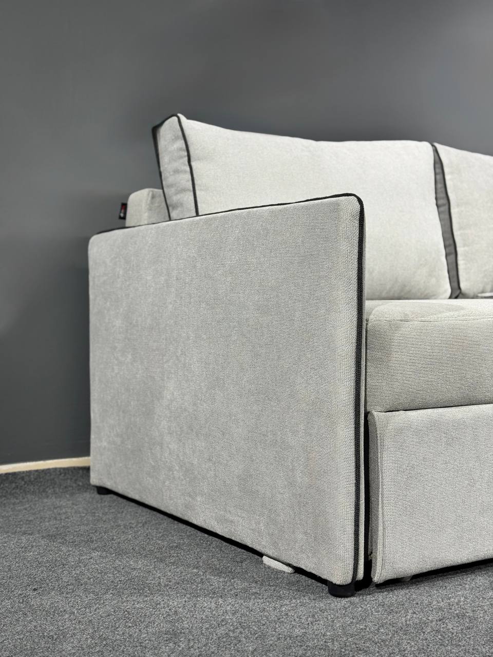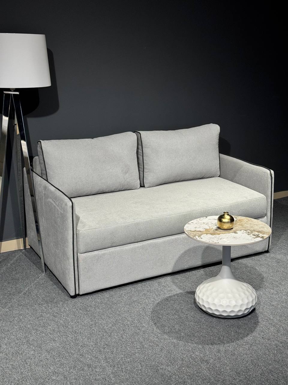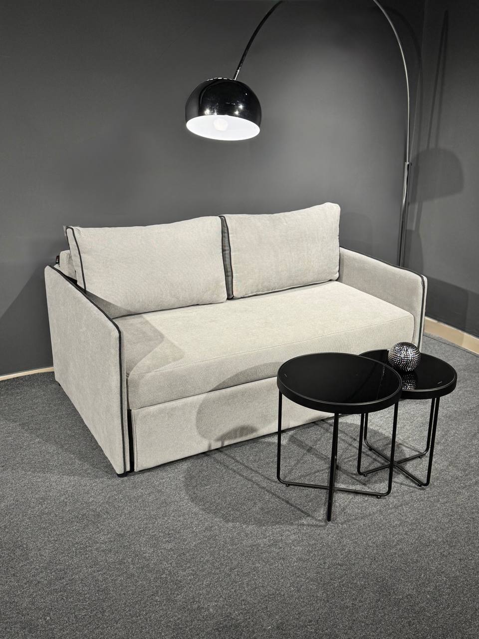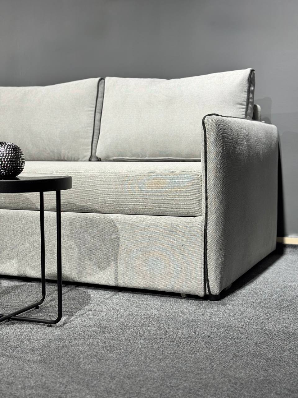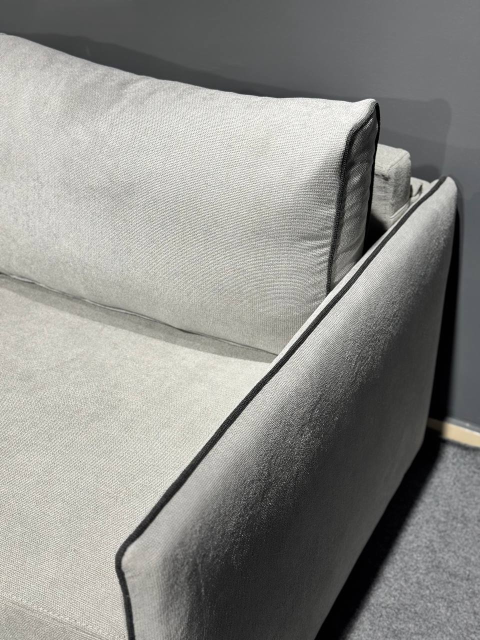 Диван у сучасному мінімалістичному стилі.Стильний та компактний диван, який ідеально доповнить інтер’єр квартири, студії або офісу. Лаконічний дизайн із чіткими лініями та контрастною окантовкою додає моделі сучасного характеру, а нейтральний світлий відтінок легко поєднується з будь-якою кольоровою гамою приміщення.