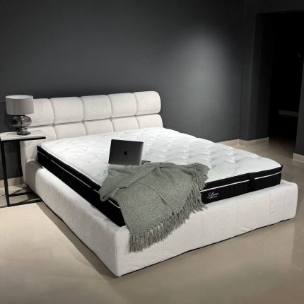 М’яке ліжко з високим узголів’ям.Стильне сучасне ліжко з м’яким узголів’ям, яке створює комфортну та затишну атмосферу у спальні. Узголів’я оббите приємною на дотик тканиною та має лаконічну форму, що чудово підходить для сучасних інтер’єрів. Міцна конструкція забезпечує надійність і довговічність, а м’яка оббивка додає елегантності та комфорту.Ліжко гармонійно поєднується з різними стилями меблів та стане стильним акцентом у вашій спальні.