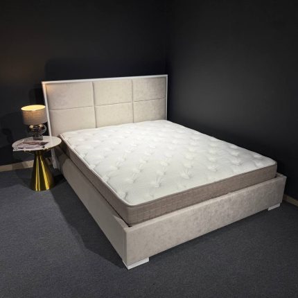 М’яке ліжко з високим узголів’ям.Стильне сучасне ліжко з м’яким узголів’ям, яке створює комфортну та затишну атмосферу у спальні. Узголів’я оббите приємною на дотик тканиною та має лаконічну форму, що чудово підходить для сучасних інтер’єрів. Міцна конструкція забезпечує надійність і довговічність, а м’яка оббивка додає елегантності та комфорту.Ліжко гармонійно поєднується з різними стилями меблів та стане стильним акцентом у вашій спальні.