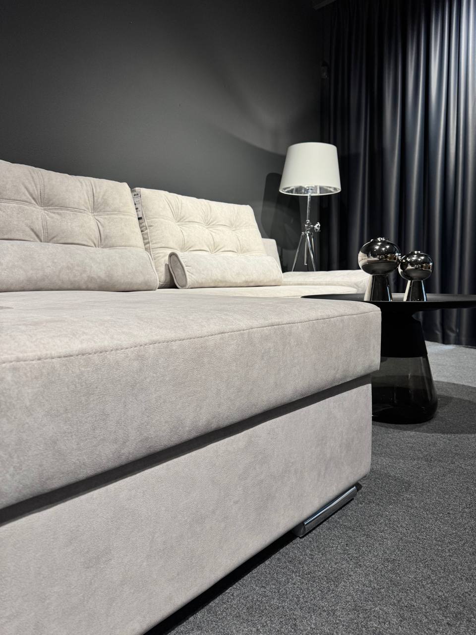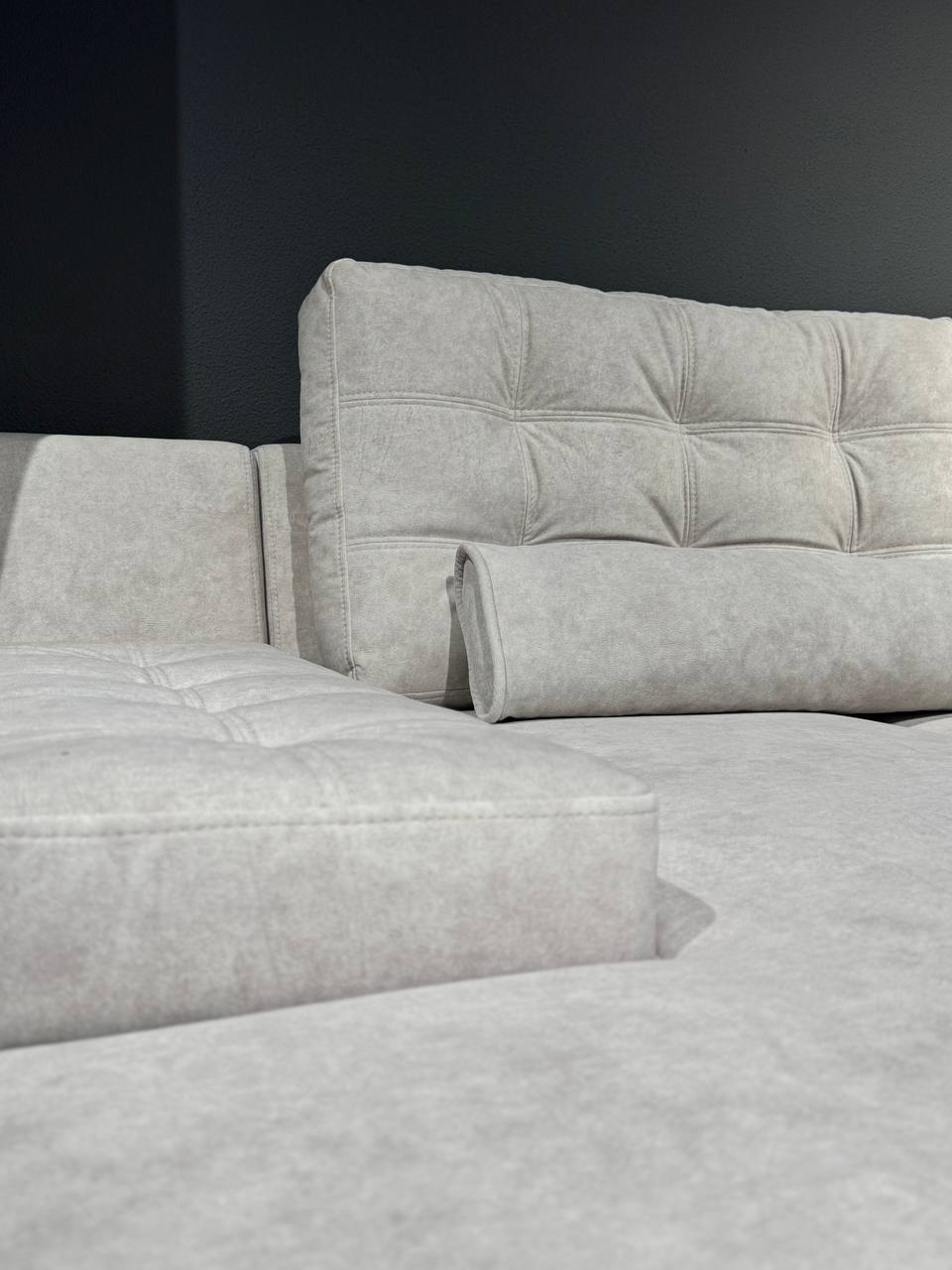 Кутовий диван з високими спинками.Сучасний кутовий диван поєднує стильний вигляд та продуманий комфорт. Модель виконана у стриманому світлому відтінку, що легко вписується в будь-який інтер’єр і додає простору легкості.Особливістю дивана є регульовані подушки спинки, які дозволяють налаштувати глибину сидіння під власні потреби — для відпочинку, перегляду фільмів чи прийому гостей. Простора шезлонг-секція забезпечує максимальний комфорт для релаксу.М’яка оббивка приємна на дотик, а якісний каркас гарантує надійність і довговічність у використанні.
