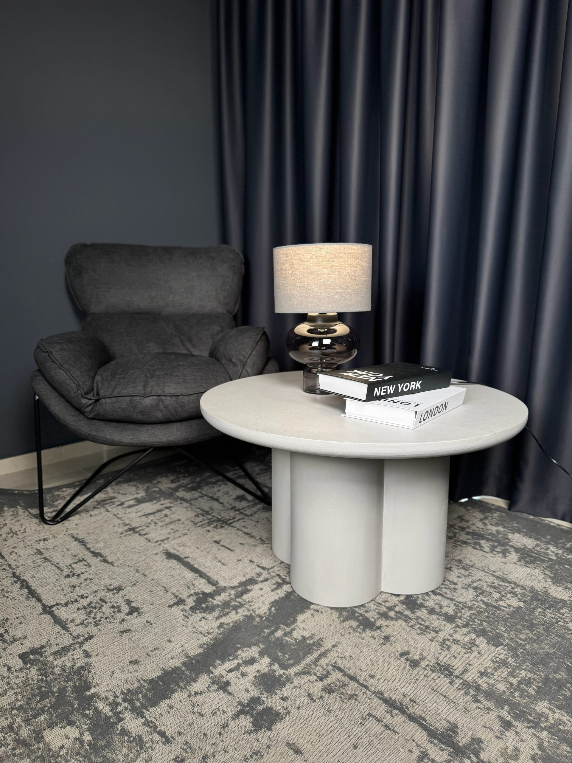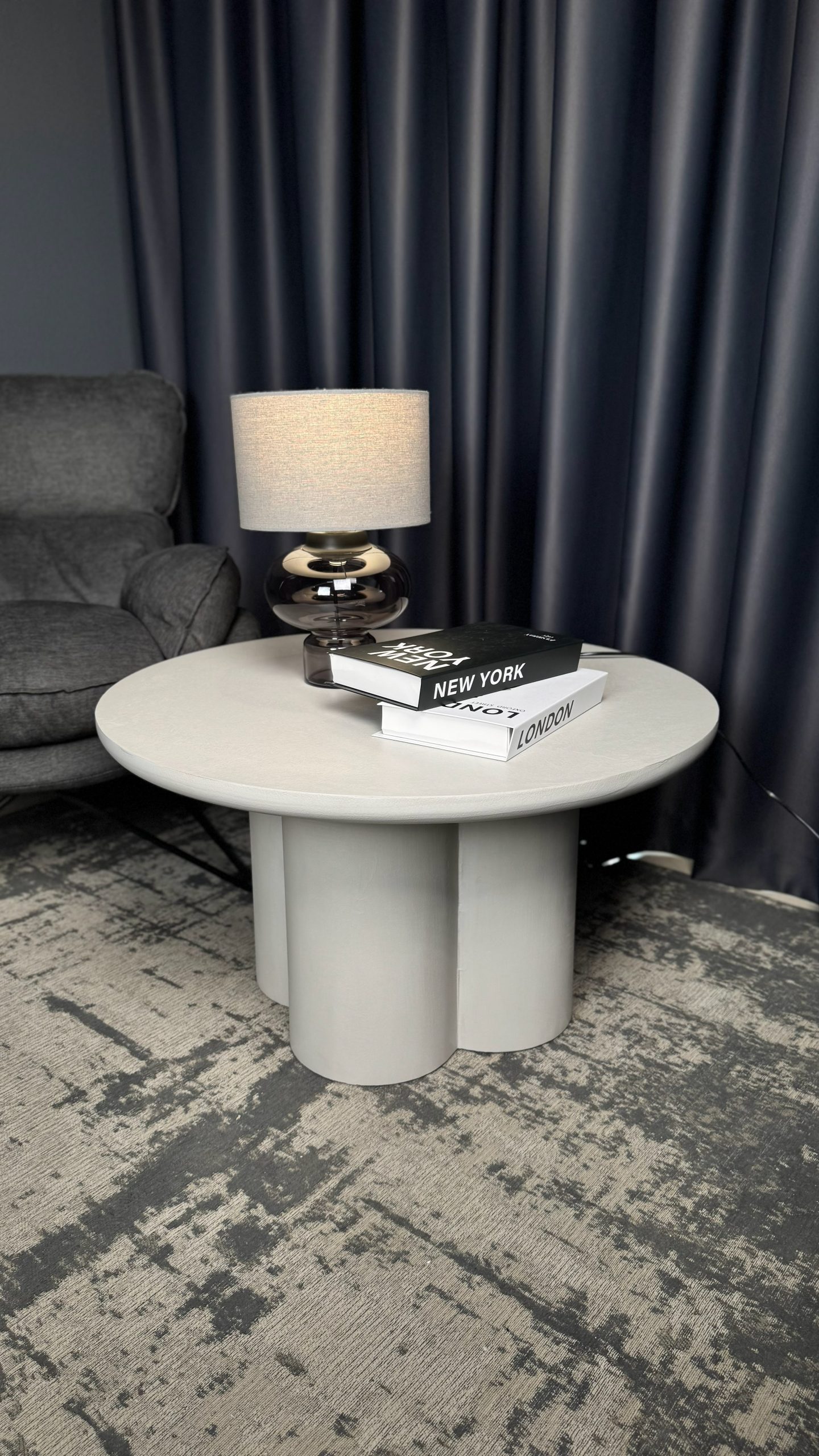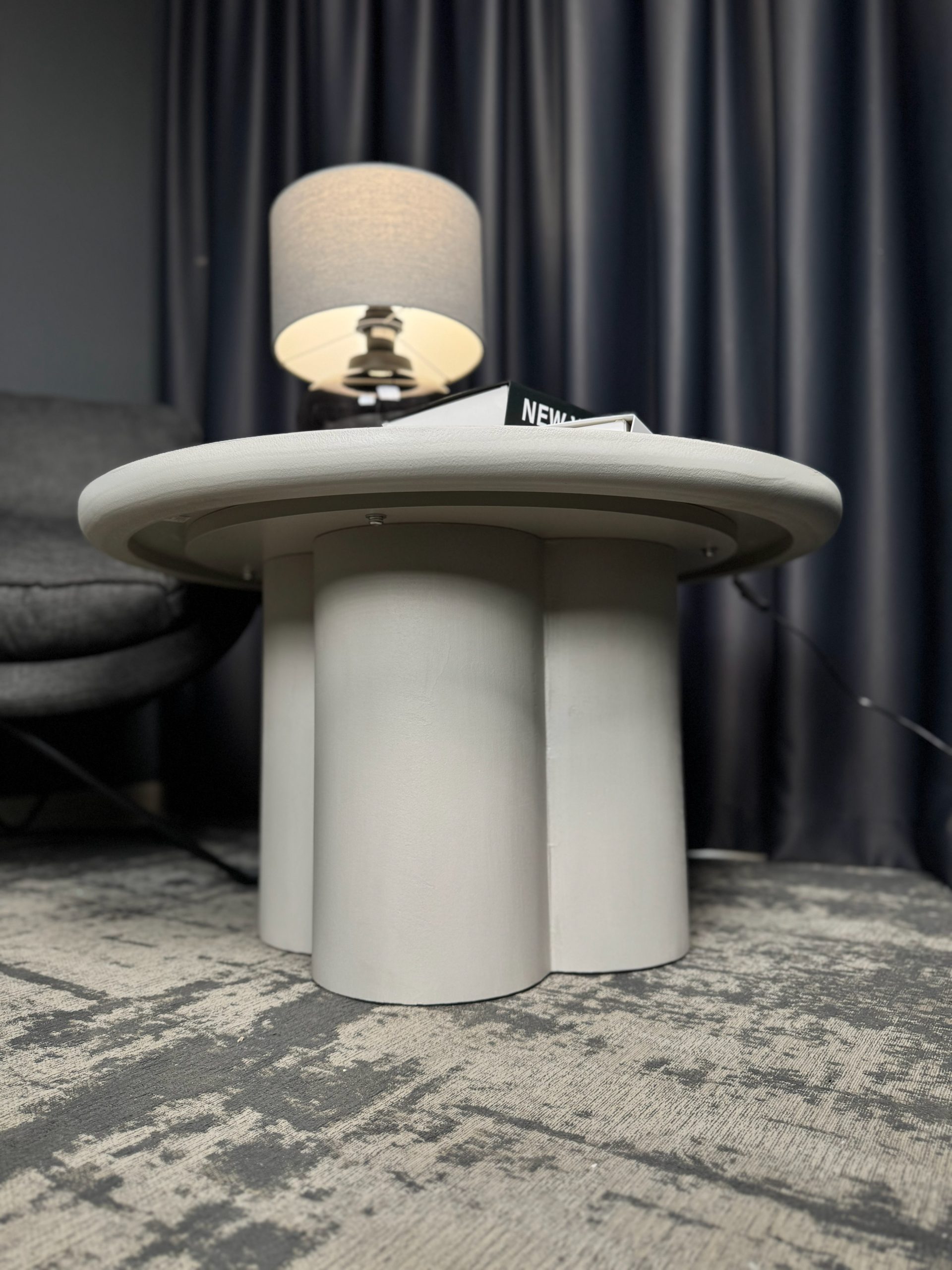 Сучасний журнальний столик із виразним дизайном — стильний акцент для вашої вітальні. Його кругла стільниця та оригінальна масивна основа створюють гармонійний баланс між естетикою та функціональністю.Лаконічна форма та світлий відтінок легко поєднуються з різними стилями інтер’єру — від мінімалізму до сучасної класики. Завдяки стійкій конструкції столик надійно слугуватиме для щоденного використання: для кави, книг або декоративних елементів.Компактні розміри дозволяють зручно розмістити його навіть у невеликому просторі, не перевантажуючи інтер’єр.