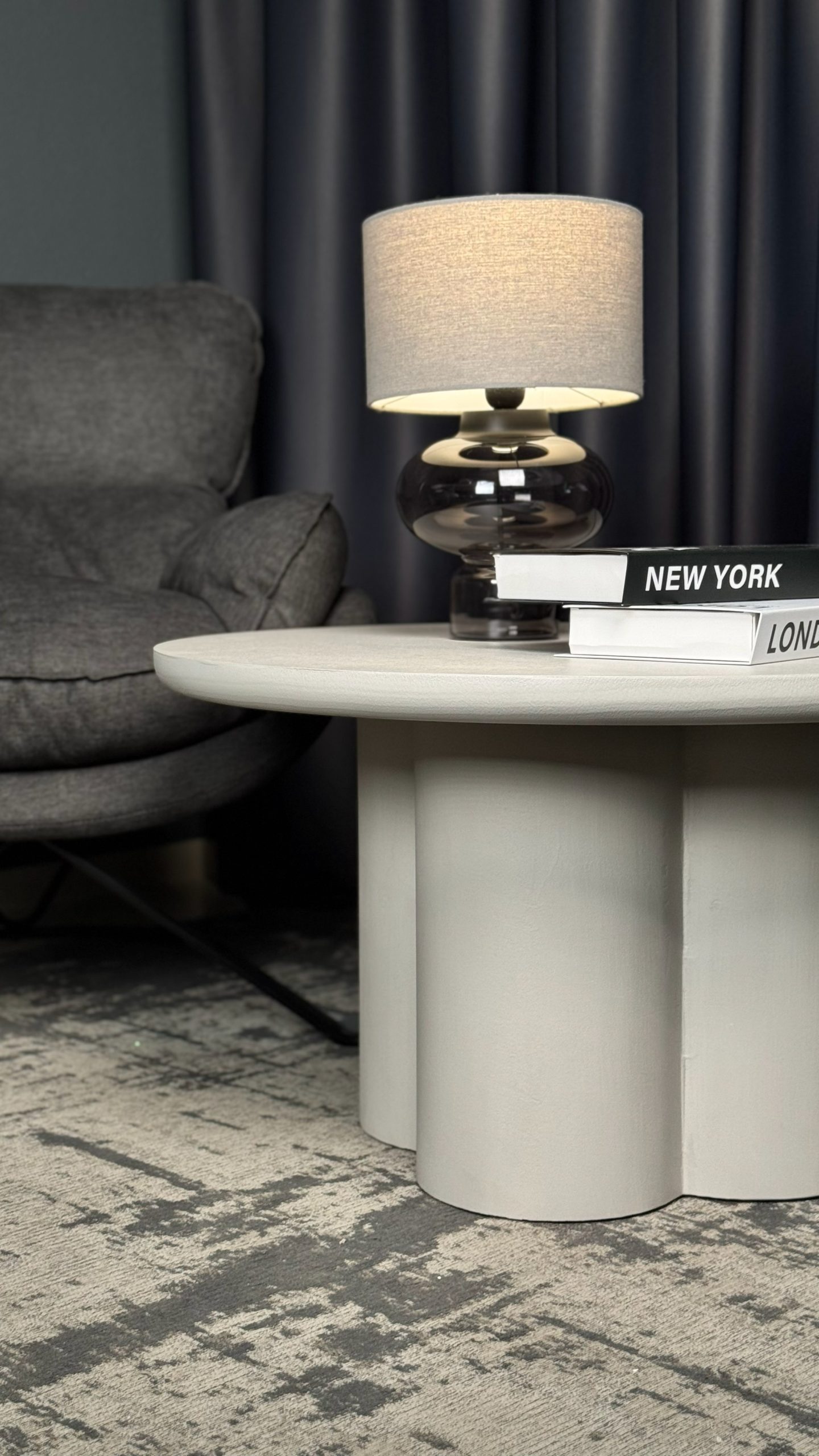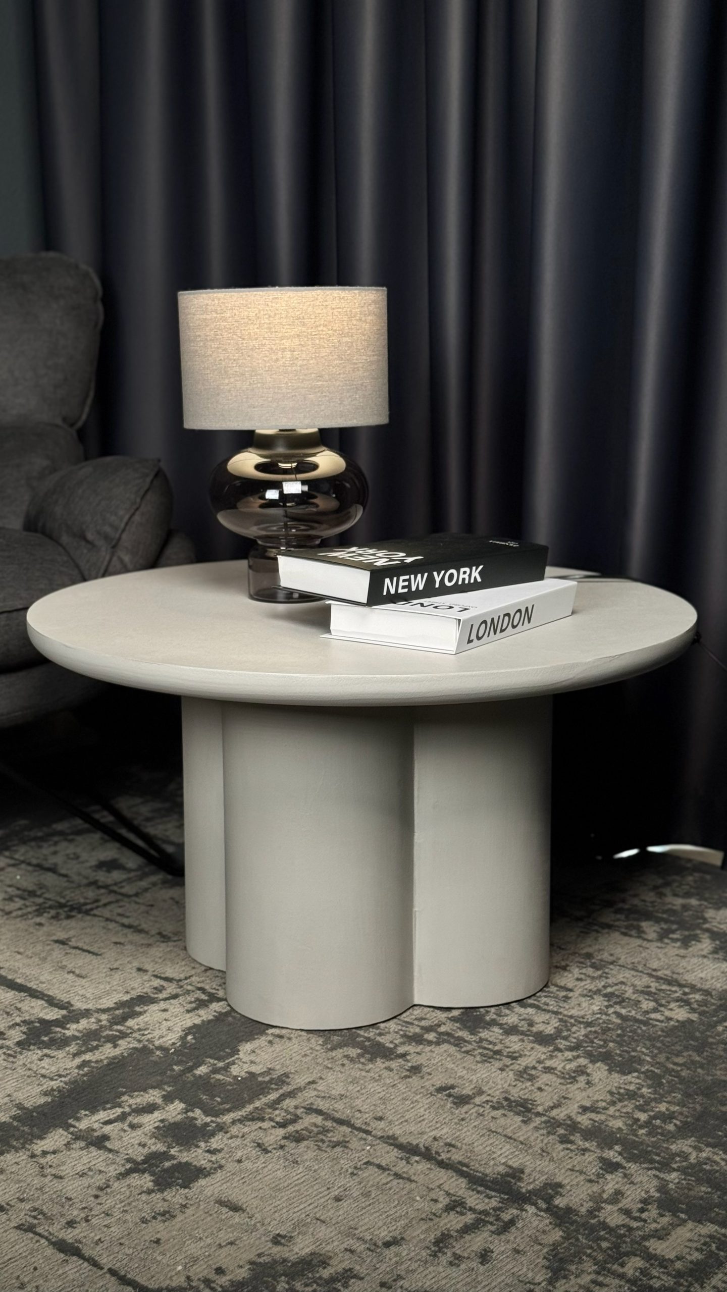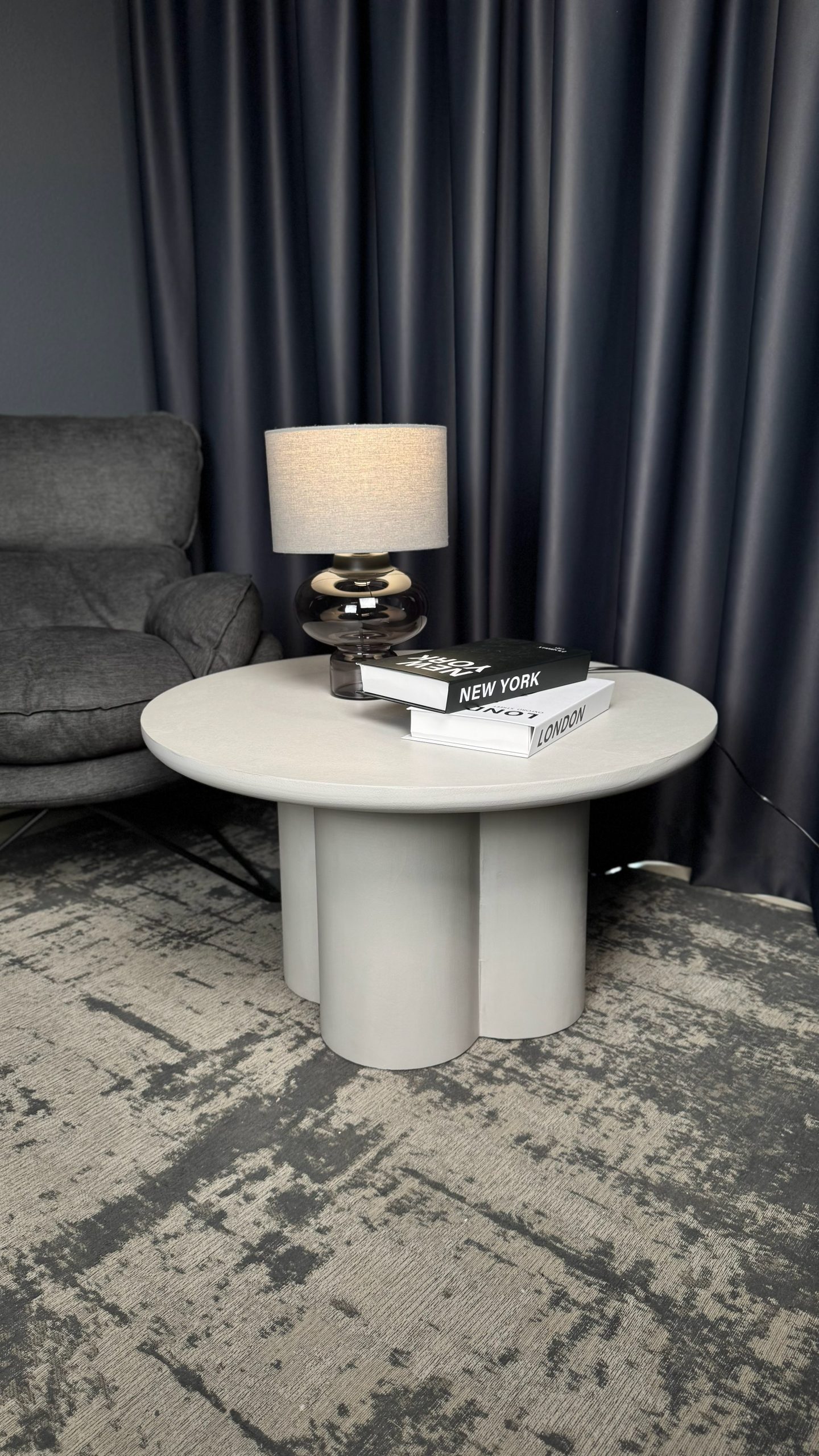 Сучасний журнальний столик із виразним дизайном — стильний акцент для вашої вітальні. Його кругла стільниця та оригінальна масивна основа створюють гармонійний баланс між естетикою та функціональністю.Лаконічна форма та світлий відтінок легко поєднуються з різними стилями інтер’єру — від мінімалізму до сучасної класики. Завдяки стійкій конструкції столик надійно слугуватиме для щоденного використання: для кави, книг або декоративних елементів.Компактні розміри дозволяють зручно розмістити його навіть у невеликому просторі, не перевантажуючи інтер’єр.